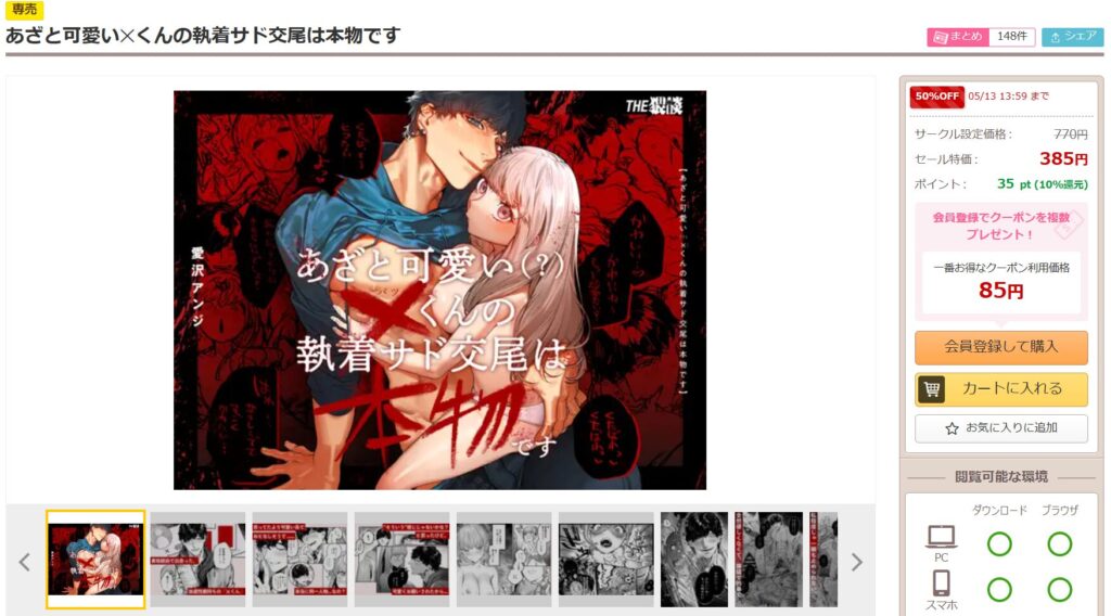 調査した結果、「あざと可愛い✕くんの執着サド交尾は本物です」は、300円クーポンがあるDLsiteが1番お得に読めるということが分かりました。
